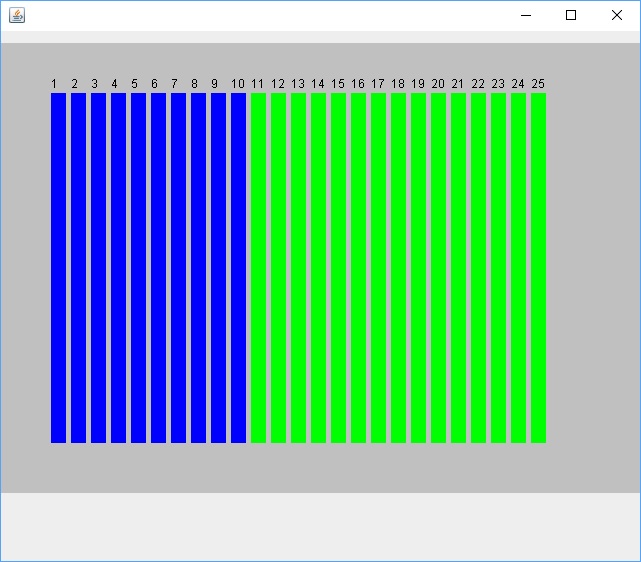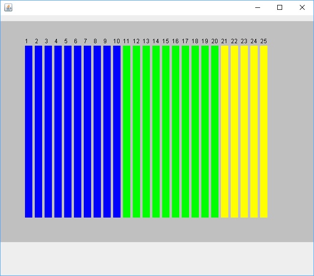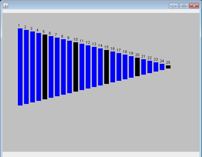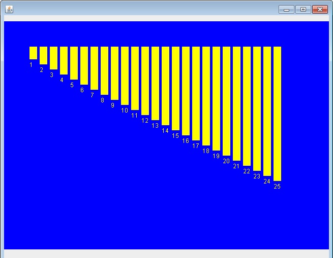 Write lines of Java code (the body of the paintComponent method) that uses a loop or loops to display the following images: